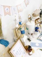 Hemos querido diseñar esta papelería delicada y elegante tanto para niñas como para niños como un fondo de armario total de las mamis actuales. Trigo y ramas combinados con tonalidades tierra y azul añil. Toda una mezcla de divinidades que conseguirán que tengas la mesa dulce de comunión más elegante del mundo.