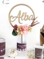 No es sólo un topper para tarta: es una decoración única con personalidad que dará un toque elegante y único a tu mesa dulce. Si no llevas tarta ese día, ¿qué te parece a modo de decoración de centro de mesa?