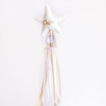 - Realizada con tela de algodón brillantina blanco por un lado y rosa por otro, cosida a mano.